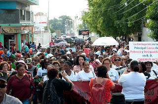 Santo Domingo.- Representantes de más de 70 organizaciones que trabajan por los derechos de las mujeres marcharon este martes desde el Parque Independencia hacia el Palacio Nacional, para entregar un documento al Presidente de la República demandando respuesta a los problemas que afectan al colectivo femenino. El mismo fue entregado de manera simbólica a la prensa, ya que no fueron recibidas en el Palacio Nacional.