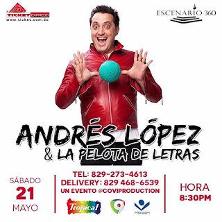 El extraordinario comediante y humorista colombiano Andrés López visita por primera vez a República Dominicana cargado de humor para compartir con el público su exitoso monólogo “La pelota de letras”, el sábado 21 de mayo, en Escenario 360.