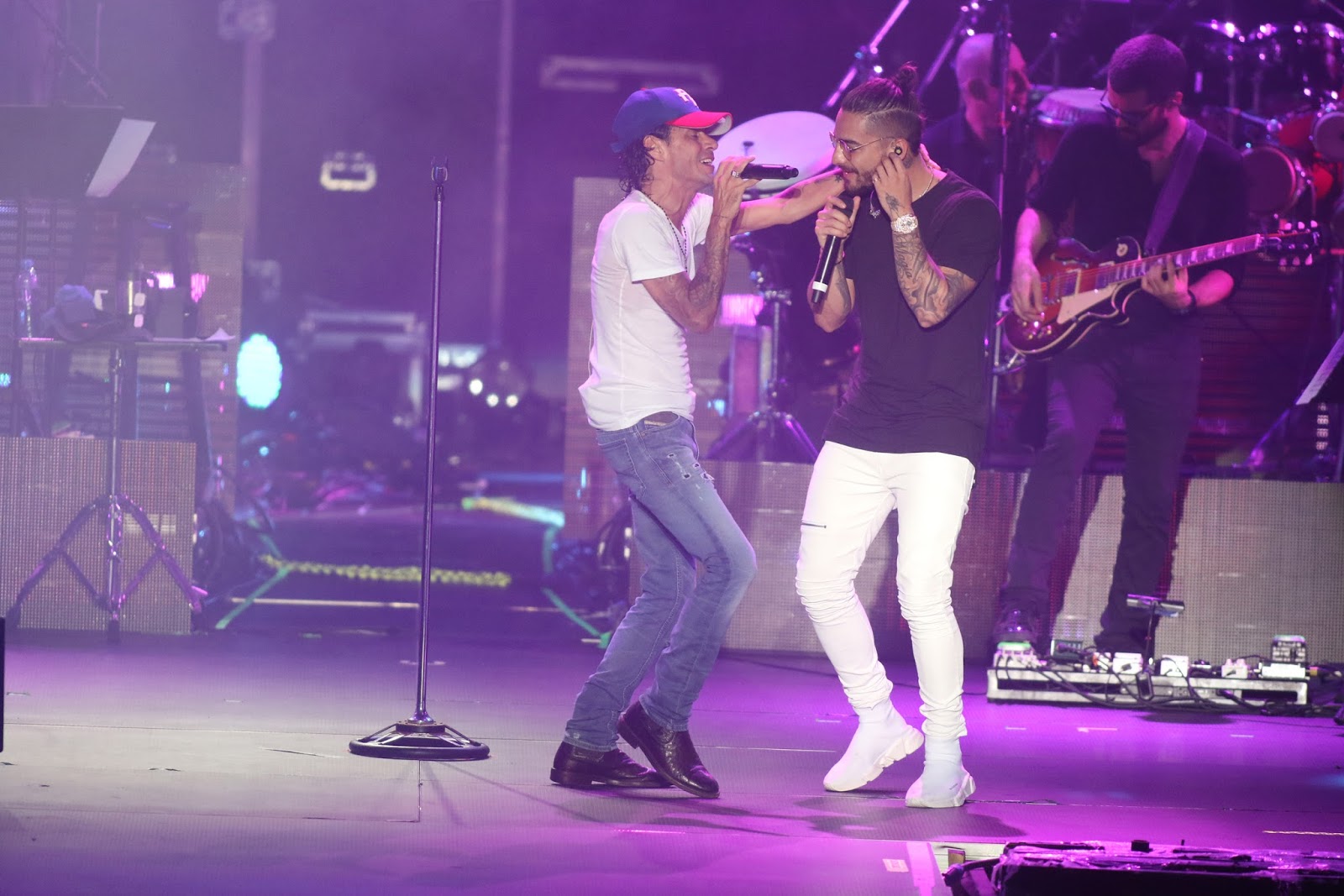 | Maluma en interpretación de «Felices los 4» con Marc Anthony. |
