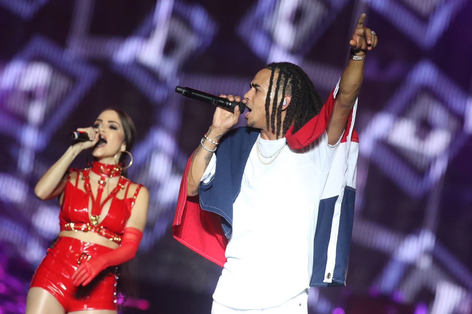 | Ozuna en escena con la dominicana Natti Natasha. |