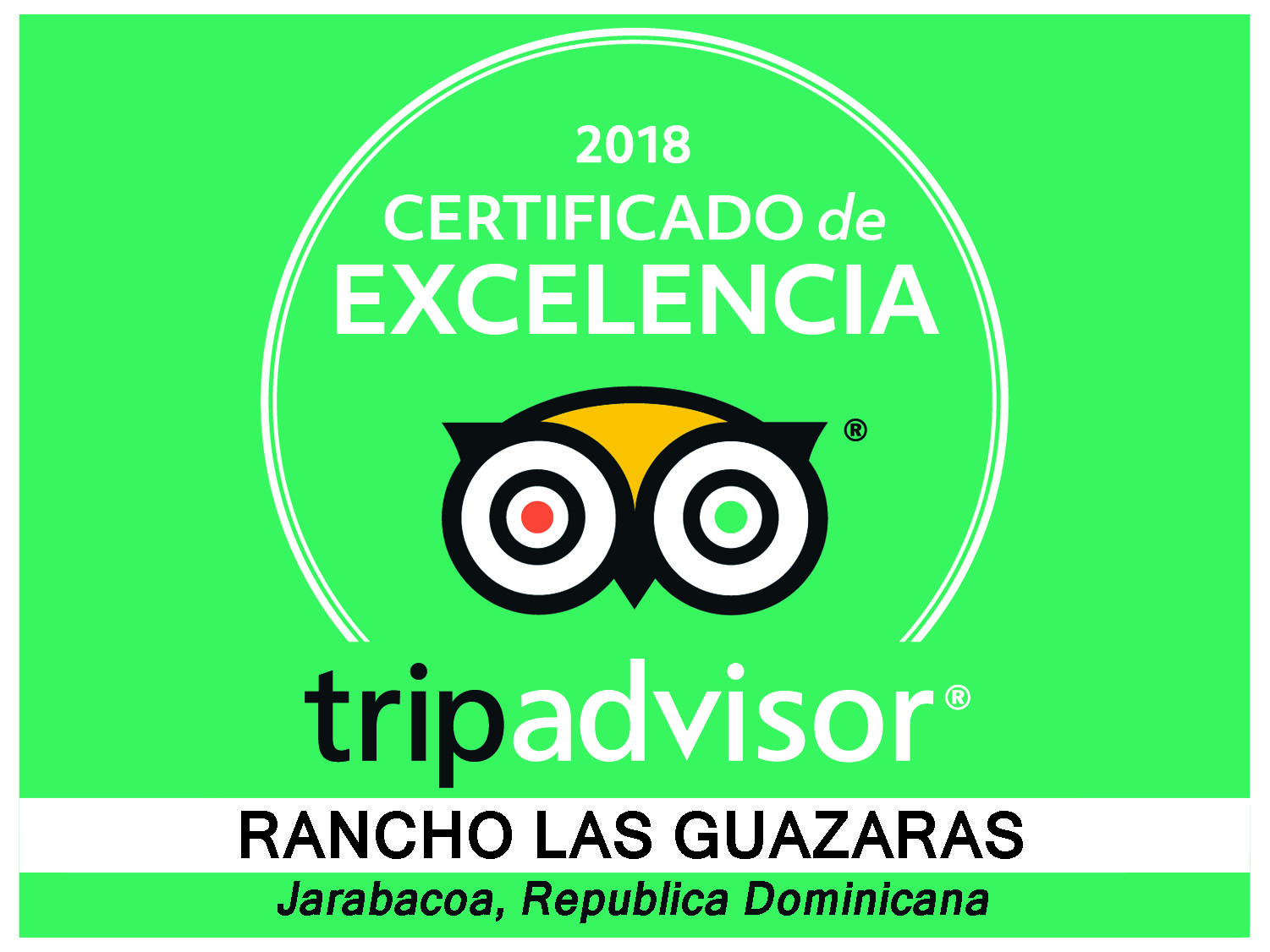Jarabacoa, La Vega.- TripAdvisor.com ha concedido por cuarto año el “Certificado a la Excelencia”, al vacacional turístico Rancho Las Guázaras, gracias las excelentes opiniones que ha recibido de sus clientes en este importante website.