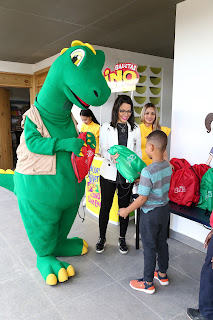 Santo Domingo.- Como parte del cierre de la primera edición de la iniciativa Hazme un Cuento, Molinos Modernos y su marca galletas Dino, llevó una “tarde divertida” a los niños de la Fundación La Merced, en compañía del personaje emblemático de la marca: Dino.