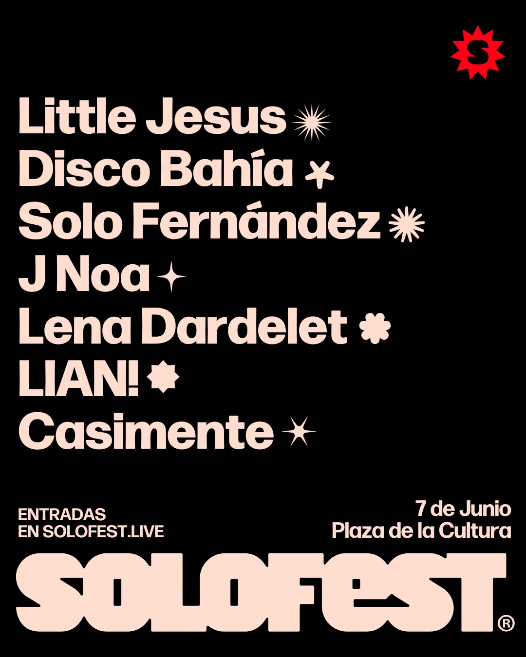 Little Jesus y Disco Bahía, desde México, se unen a la propuesta que además tendrá a los dominicanos J Noa, Lena Dardelet, LIAN! y Casimente, así como Sólo Fernández, quienes desplegaran sus respectivos repertorios en una noche llena de ritmos, colores, historias y originalidad.